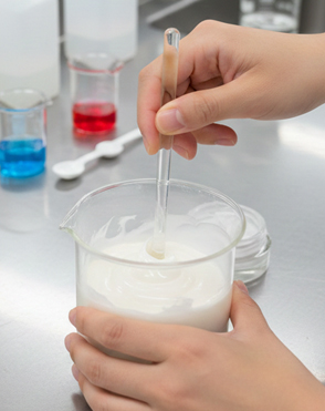 化粧品にはどんな成分が入っているの?肌をしっとりさせる仕組みってどうなっているの?そんな“コスメの科学”を、実験を通して楽しく学べる体験です。実際に化粧品づくりで使われる乳化という技術を使って、自分だけの保湿クリームを調製します。