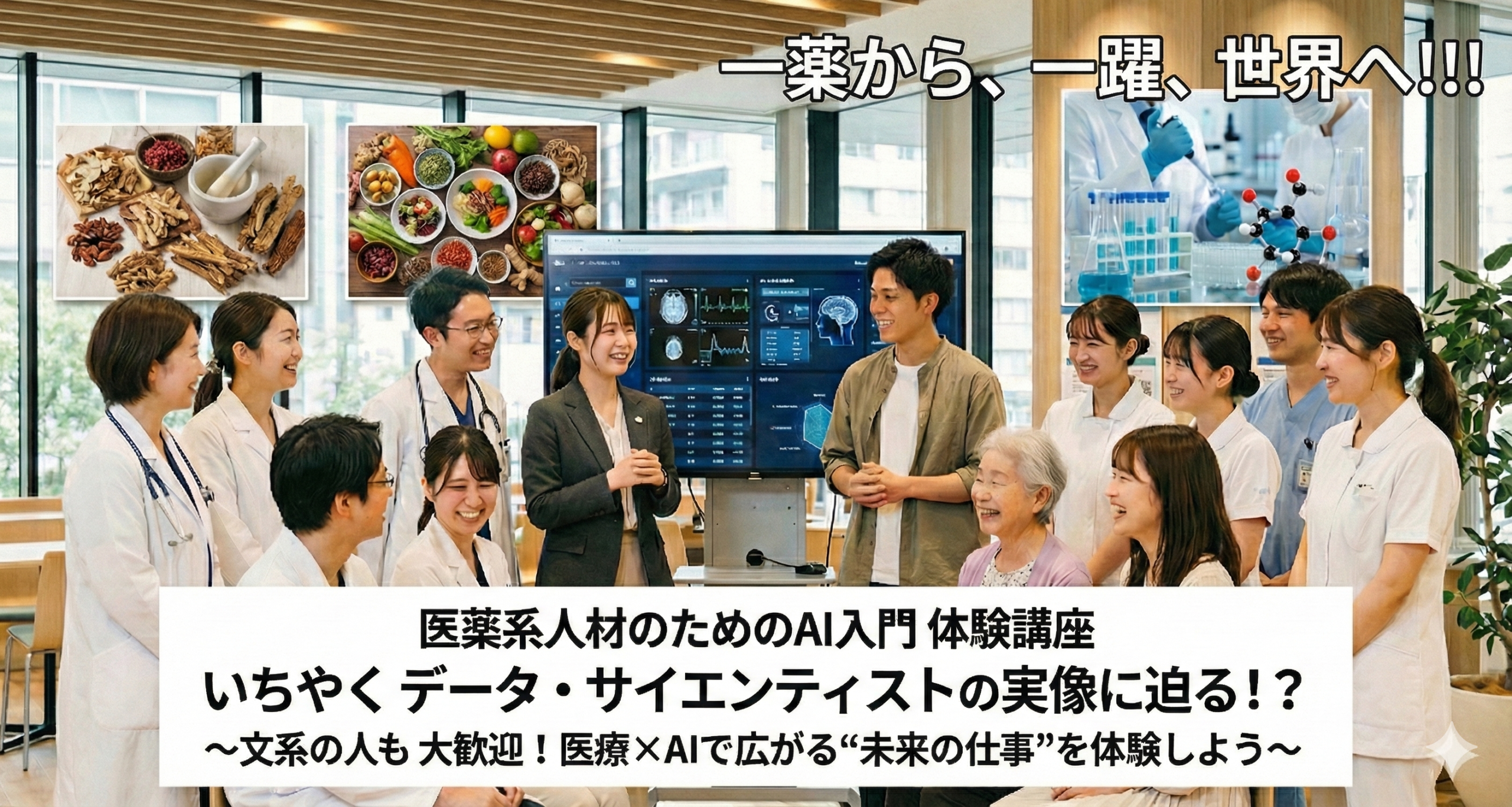 医療データサイエンスコース体験:医薬系人材のためのAI入門体験講座 いちやくデータ・サイエンティストの実像に迫る!?〜文系の人も大歓迎!医療×AIで広がる“未来の仕事”を体験しよう〜