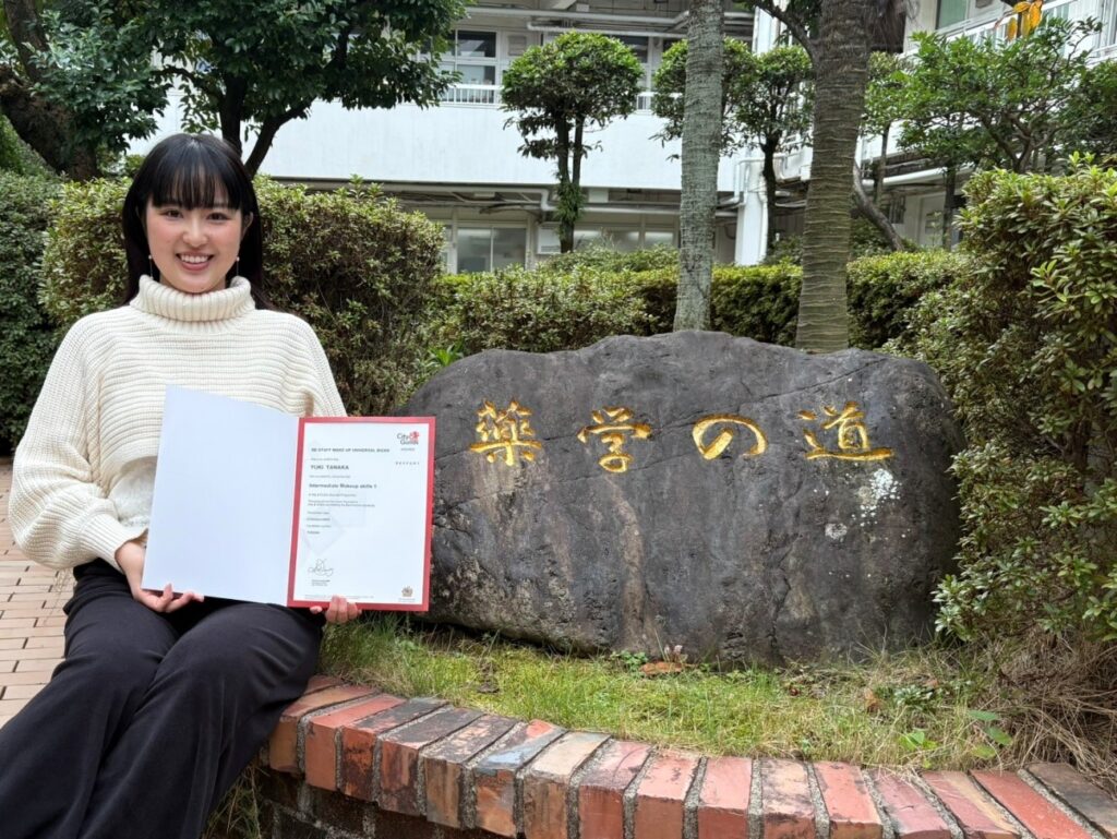 本学薬学部薬学科4年生の田中結希さんが、国際美容技術資格制度 City&Guilds(国際ライセンス) Skill1 を取得しました。