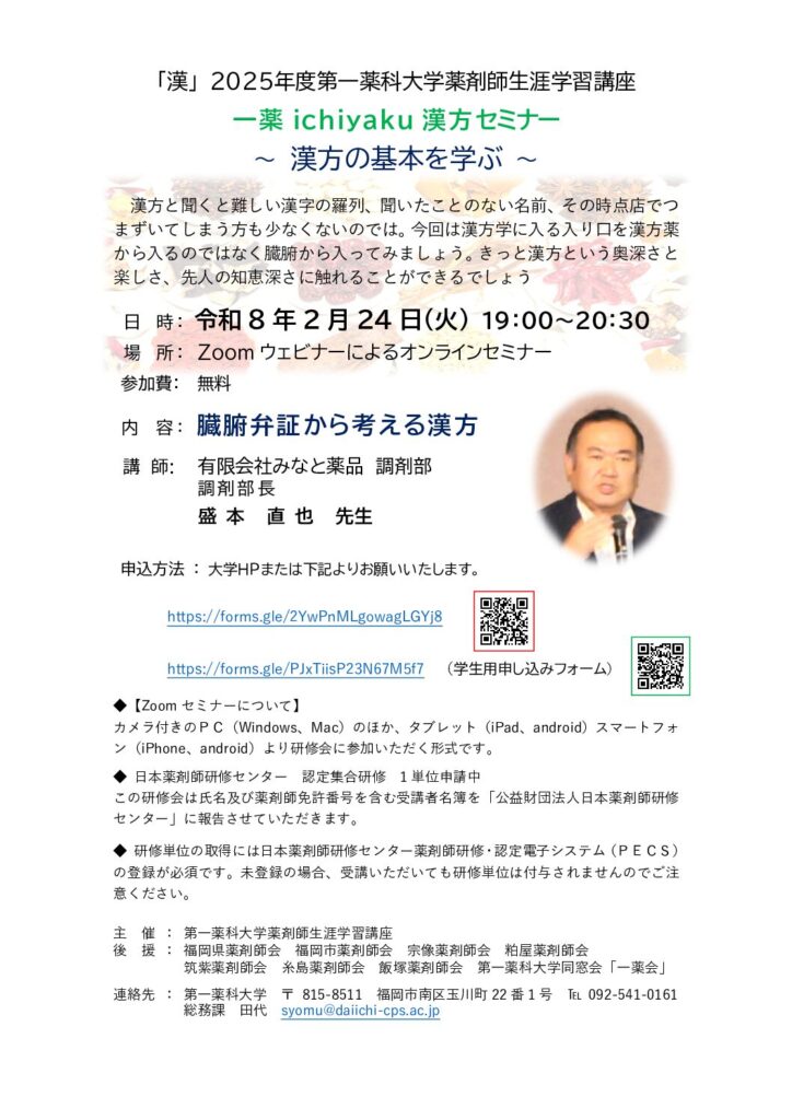 「漢」 2025年度第一薬科大学薬剤師生涯学習講座