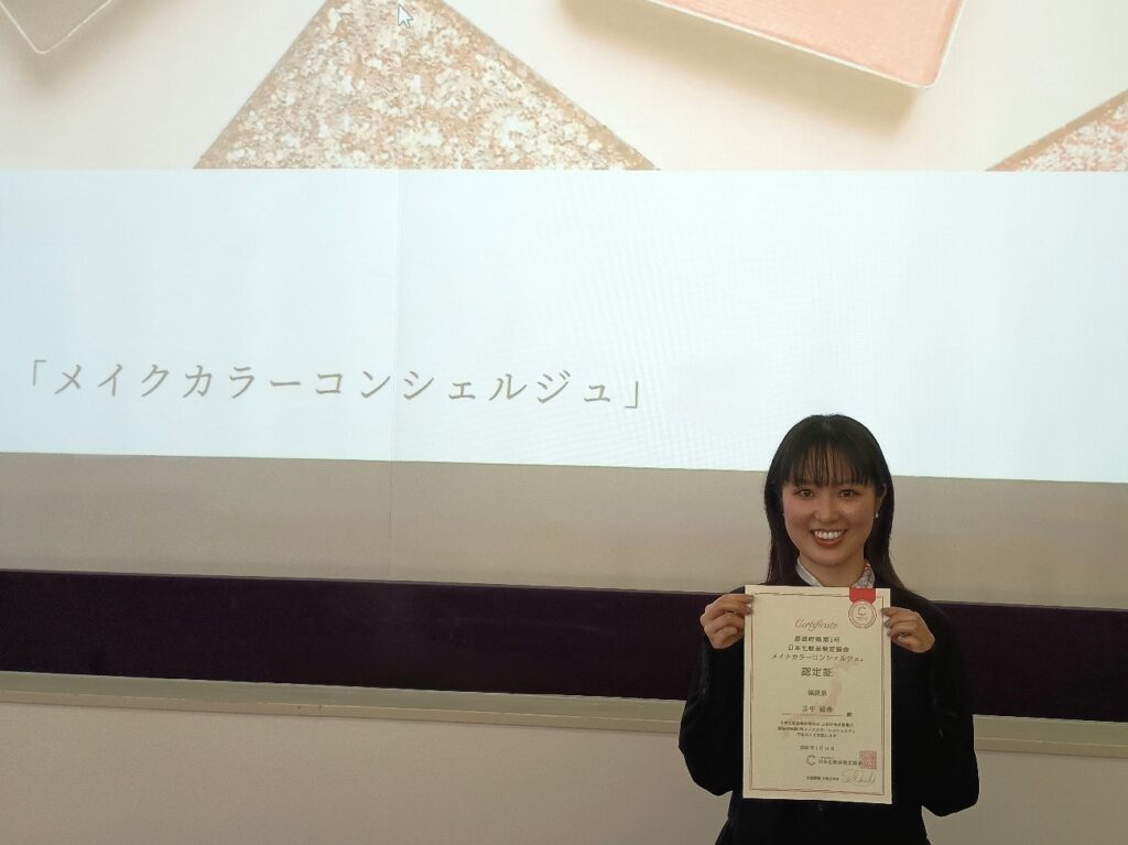 このたび、本学薬学部薬学科4年生の田中結希さんが、メイクカラーコンシェルジュ(日本化粧品検定協会)の資格を取得しました。